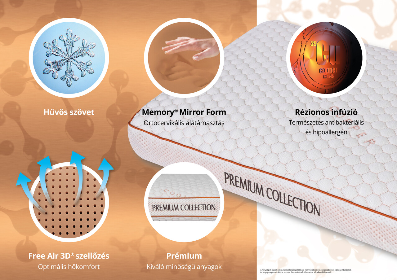 A kiváló minőségű anyagokból készült Green Future Memory Cool Copper Free Air párna kiváló fej- és nyaktámaszt kínál a Memory Mirror Foam® habnak köszönhetően, amely a fejhez, a nyakhoz és a vállakhoz formálódik a természetes testhelyzet érdekében.