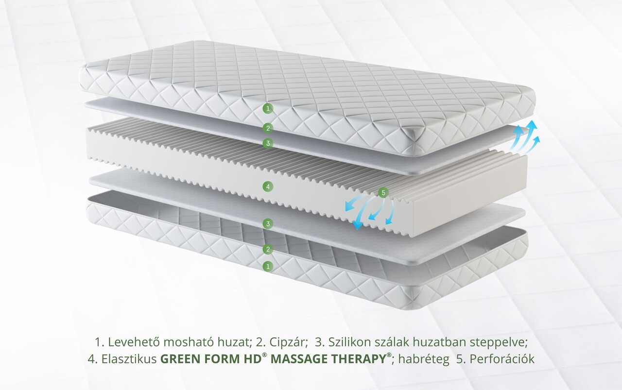 Mikromasszázs: A matrac szerkezetének profilozása mikromasszázs-hatást is kifejt, amely alvás közben javítja a vérkeringést.