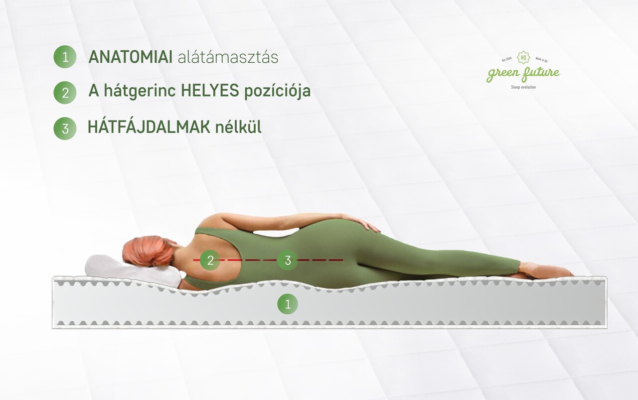 - Alkalmas minden alvási pozícióhoz: hát, oldal és has
